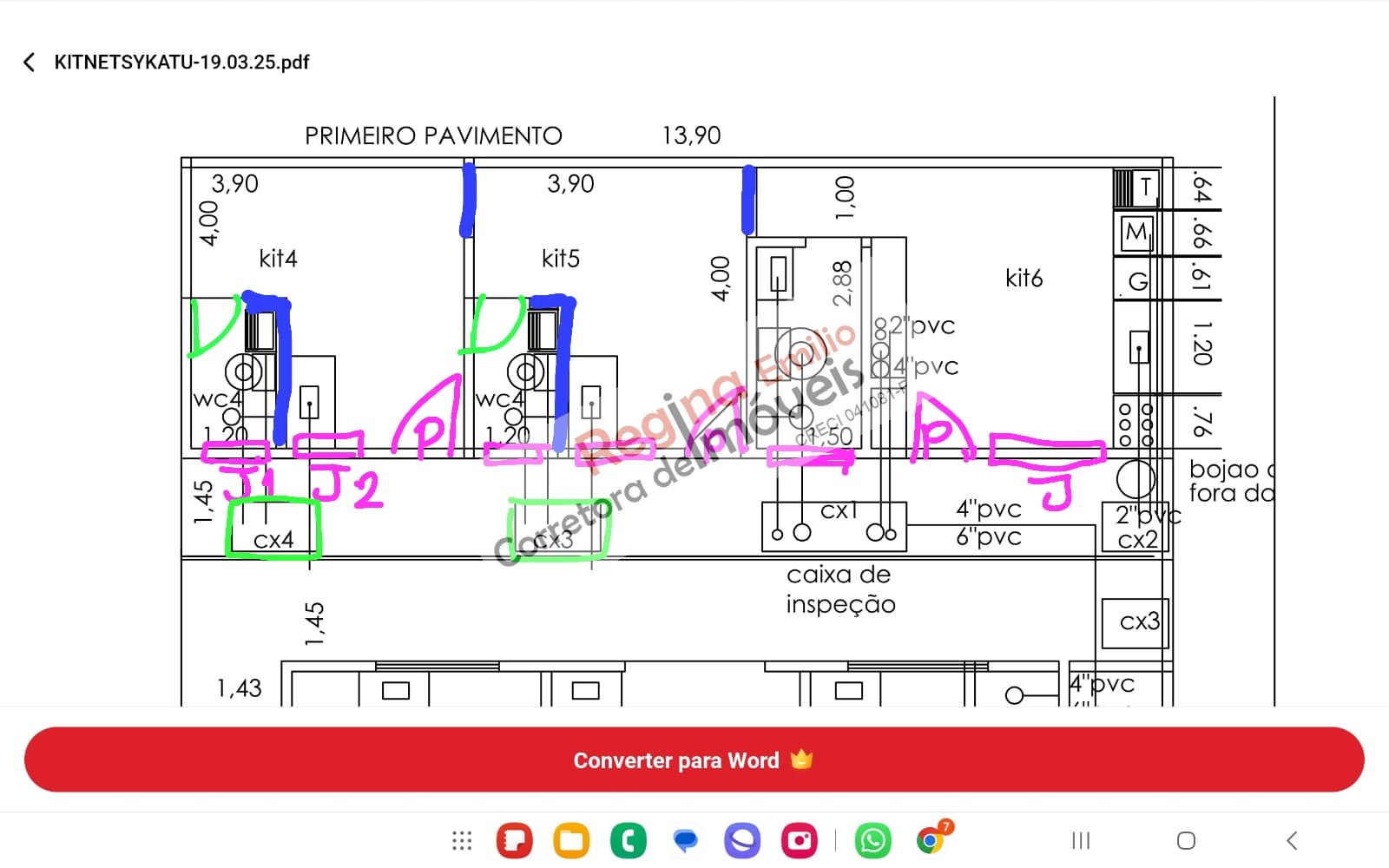 Garagem para 6 vagas 14mx5m